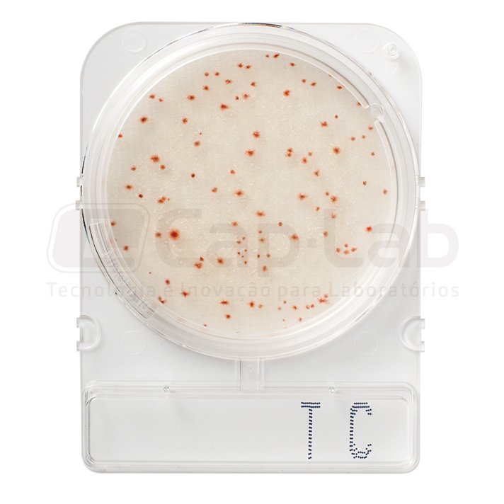 As colônias aeróbicas apresentam coloração vermelha, devido ao sal tetrazol (indicador redox), podendo distinguir com muita facilidade dos restos alimentares possíveis.